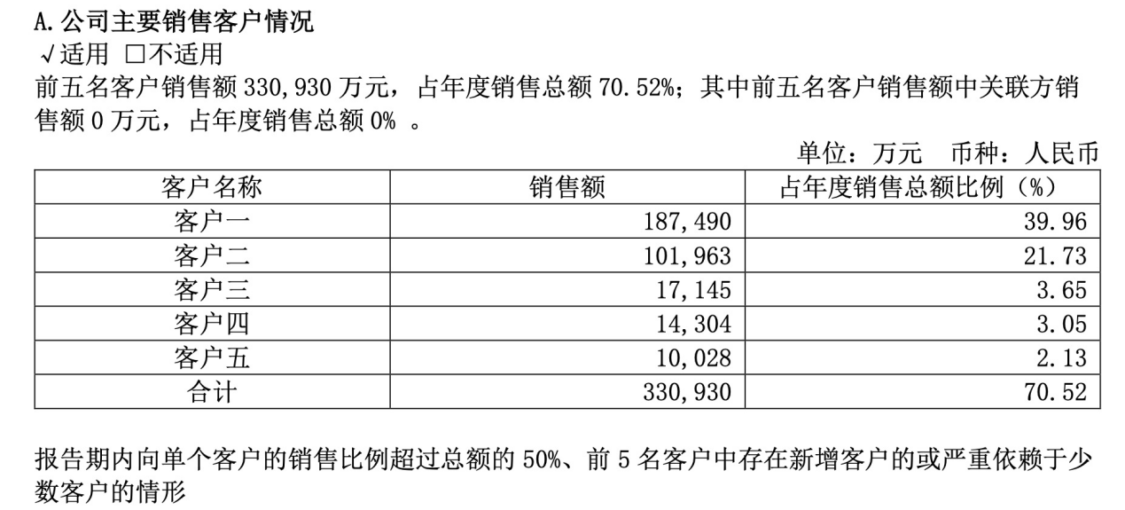 2024年,英利汽车前5大客户贡献了其70.52%的销售额。尤其是前两大客户,贡献了超过6成的收入。其中,一汽大众是公司最大客户,贡献了18.75亿元的收入,占英利汽车全年46.93亿元营收的39.95%。